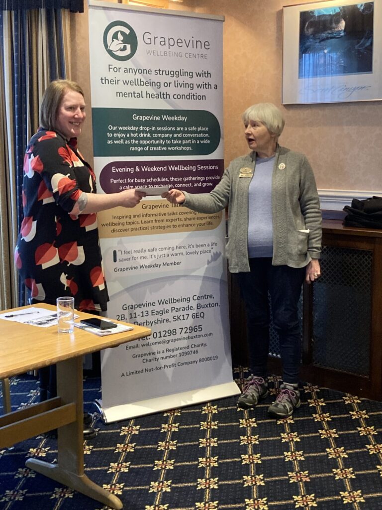At the January meeting of the IW Buxton Club members were pleased to welcome Ana Mankiewicz from the Grapevine Wellbeing Centre in Buxton. Ana gave members a very interesting and informative talk about the services and projects available for anyone struggling with mental health issues. Inner Wheel members were pleased to present Ana with a donation of funds raised at the annual coffee morning in September.