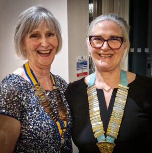 Club President, Carole Wareham, invited our newest member, Brenda Parker to cut the cake, District 21 Chairman, Nesta Williams, reminded us that when the club was chartered, petrol was 1/6d a gallon – those were the days – and Whitchurch Rotary president Brian Acty thanked club members for our support for their charities and especially for the help we gave with their prostate testing event.